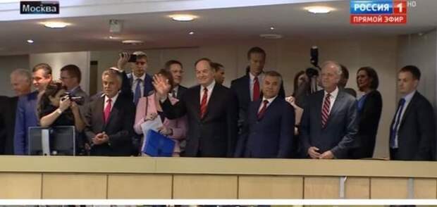 Все присутствующие в зале вместе с сопровождающими заокеанских гостей, стоя приветствовали и аплодировали американцам.